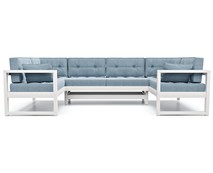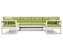 Комплект поставки: Каркас, матрасы, шесть приспинных подушек, две декоративные подушки